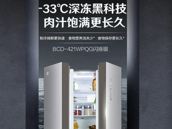 晶弘十字對(duì)開(kāi)門(mén)冰箱BCD-421WPQG閃爍銀